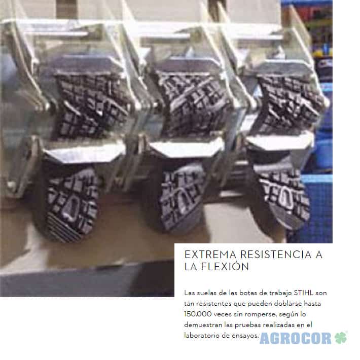 Las suelas de las botas de trabajo STIHL son tan resistentes que pueden doblarse hasta 150.000 veces sin romperse, según lo demuestran las pruebas realizadas en el laboratorio de ensayos.
